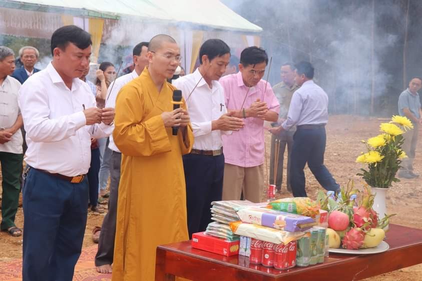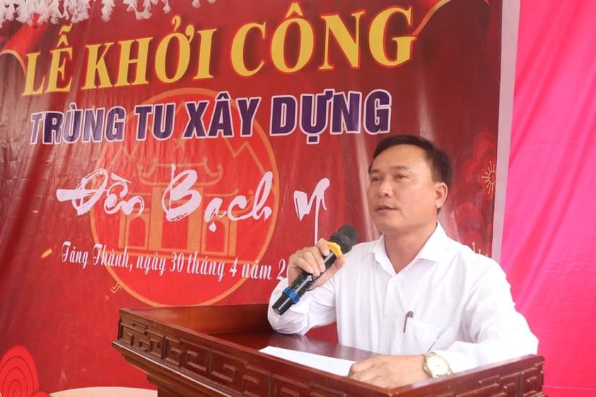 Lãnh đạo xã Tăng Thành phát biểu tại lễ khởi công trùng tu xây dựng Đền Bạch Y